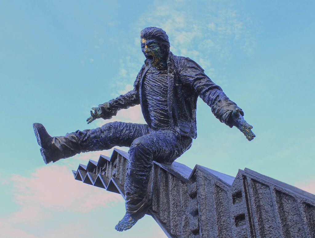 In the countdown to Syriza marking 100 days in office, Greece got its first crisis monument. Arms outstretched, mouth wide open, his face locked in despair, the sculpture depicts a man dangling from a financial index in free fall. Below, his world of concrete and stone lies broken and smashed.